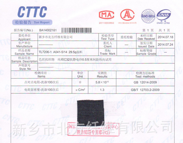 新鄉(xiāng)北方纖維紡織防靜電布檢測(cè)結(jié)果達(dá)到國(guó)際B級(jí)標(biāo)準(zhǔn)。...